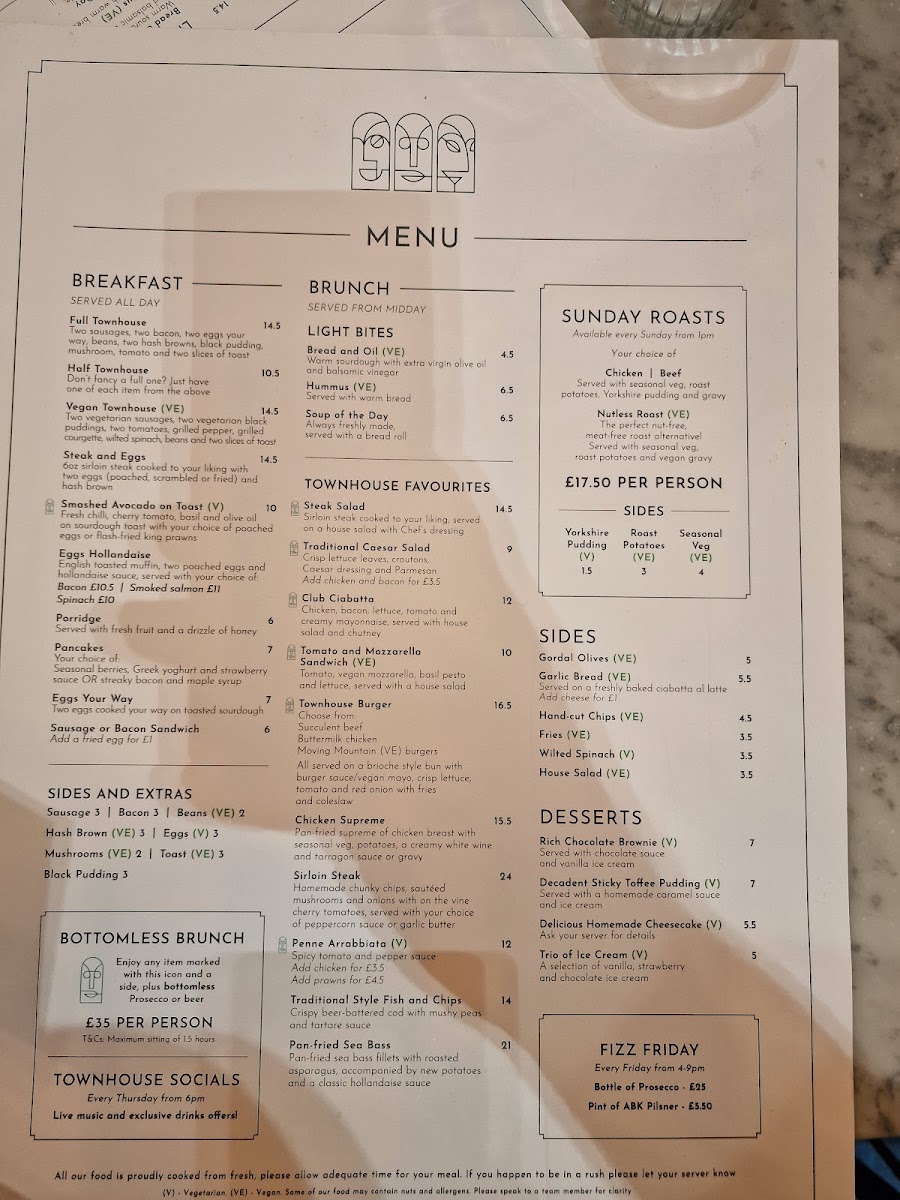 Customer reviews praise the three-course Sunday meal for its exquisite flavors and value, while the Full Townhouse breakfast delights with generous portions. The bottomless brunch stands out, featuring an impressive array of drinks alongside equally delicious food.